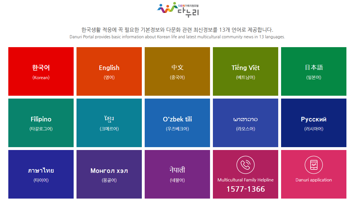 다문화가족지원 포털 다누리는 다문화 가정을 위한 다양한 정보를 제공하고 있습니다. 주요 서비스로는 법률, 교육, 건강, 취업, 상담 서비스에 관한 정보가 포함되어 있으며, 다문화 가정을 위한 정책 및 지원 프로그램에 대한 안내도 제공합니다. 또한, 다양한 언어로 제공되어 외국인 가족들도 쉽게 접근할 수 있습니다.